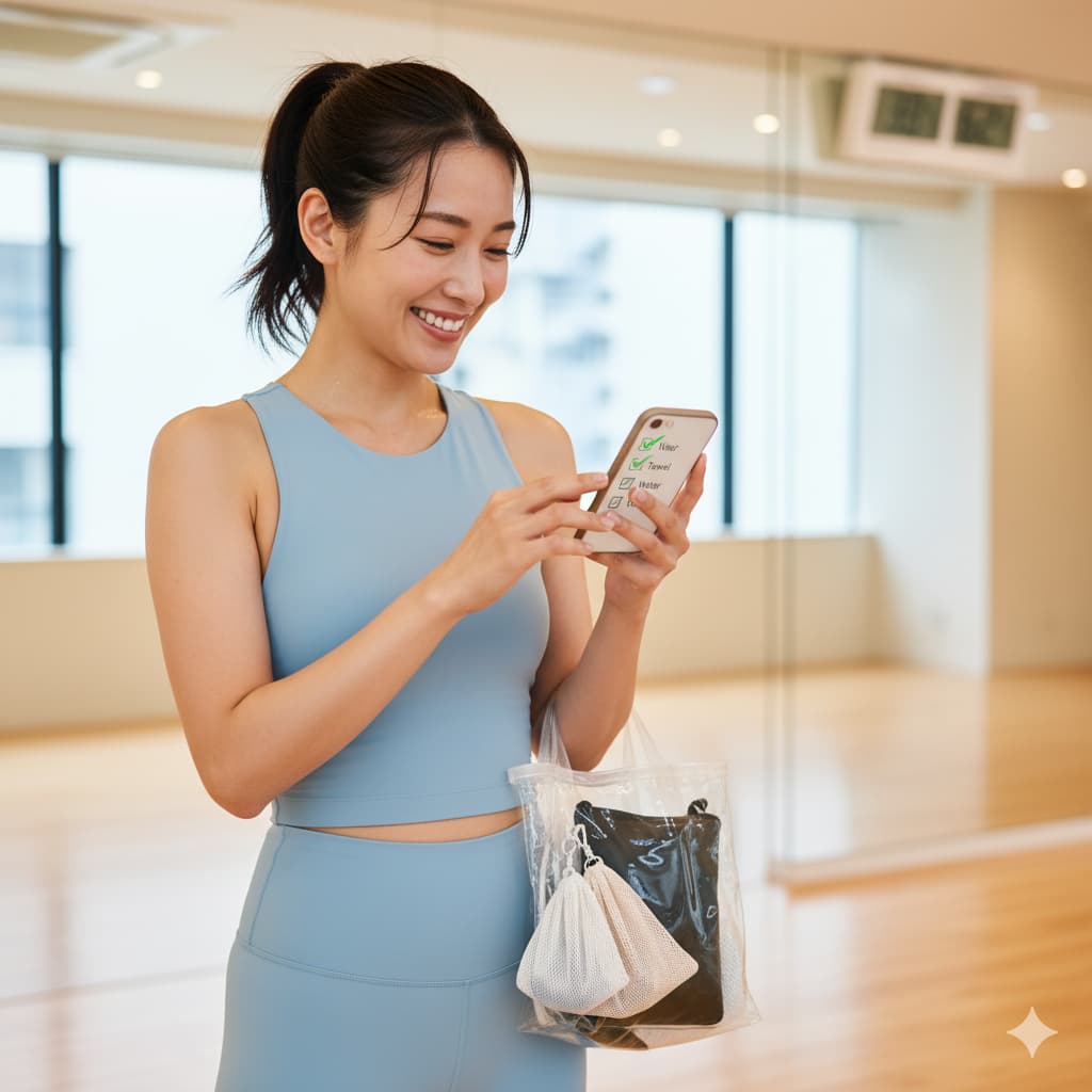 | 濡れたものを入れる袋 | 汗で濡れたウェアやタオル、ヨガラグを持ち帰るためのビニール袋や防水ポーチ。 | |