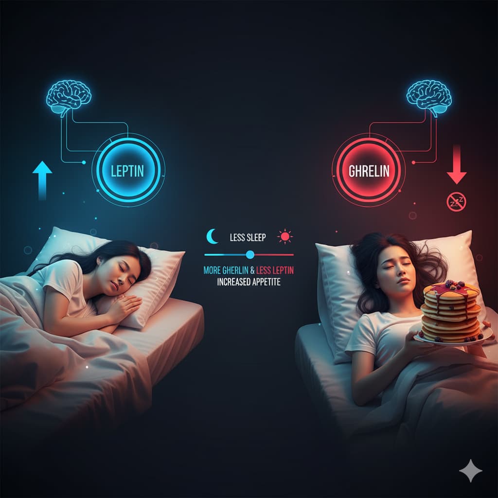 スタンフォード大学の研究をはじめ、多くの信頼できる研究報告によると、睡眠時間が不足すると、私たちの体内では食欲を強力に抑えるレプチンの分泌が減少し、逆にお腹を空かせるグレリンの分泌が過剰になることが示されています。