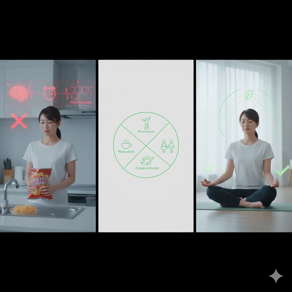 ダイエットの成功を阻む最大の敵の一つが、ストレスによる衝動的な過食、いわゆる「ストレス食い」です。人間はストレスを感じると、それに対抗するために「コルチゾール」というホルモンを分泌します。このコルチゾールは、血糖値を上昇させてエネルギーを供給しようとする過程で、食欲を増進させ、特に脳が即効性のあるエネルギー源として認識する甘いものや脂っこいものを強く欲するようにさせます。この生理的なメカニズムに打ち勝つためには、意志の力だけでなく具体的な戦略が必要です。