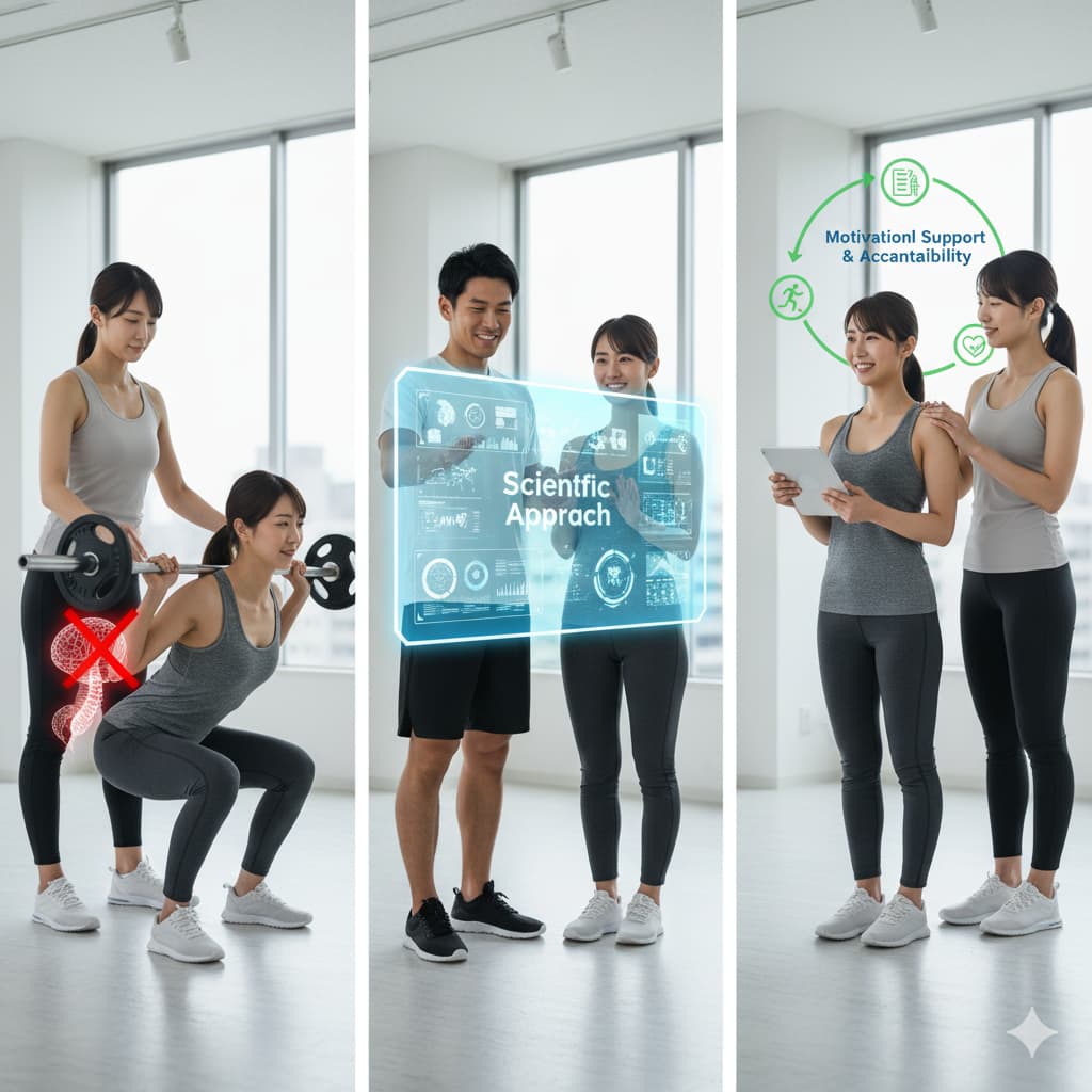 - 自分一人でのダイエット継続が難しいと感じたら、専門家(パーソナルトレーナー)の力を借りることは賢明な選択肢