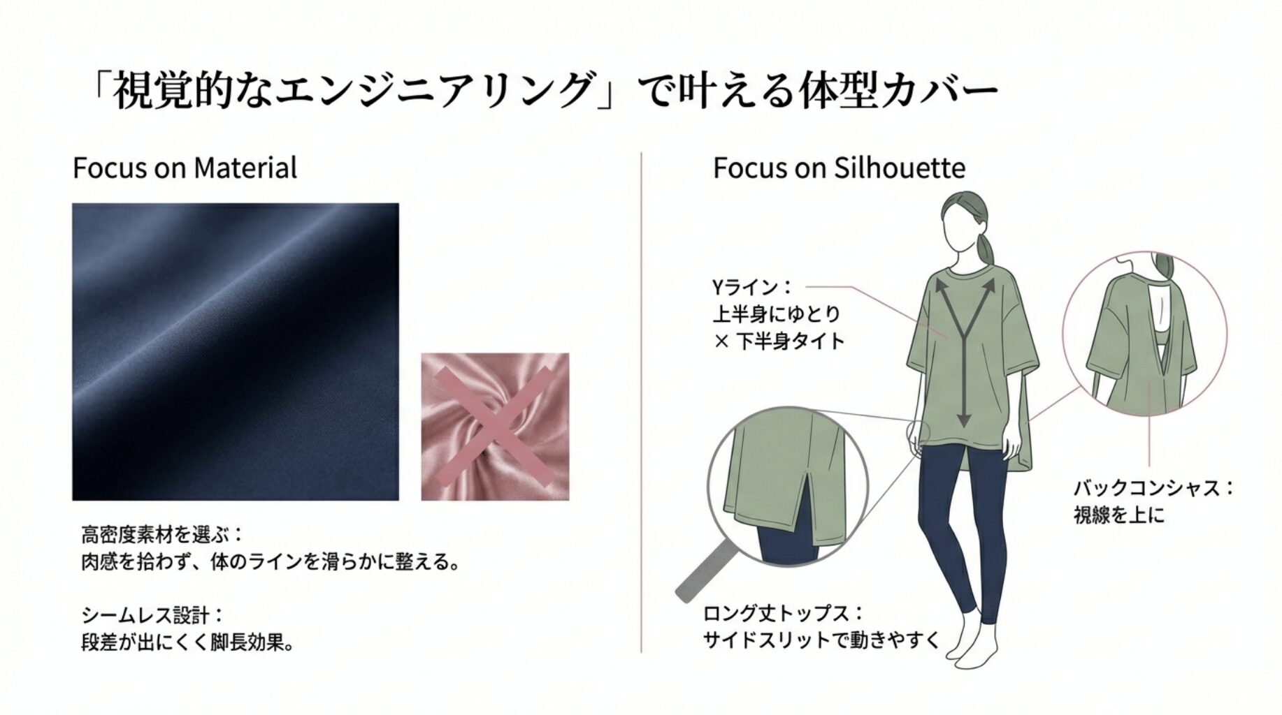 - 気になる部位を自然に隠す体型カバーのテクニック