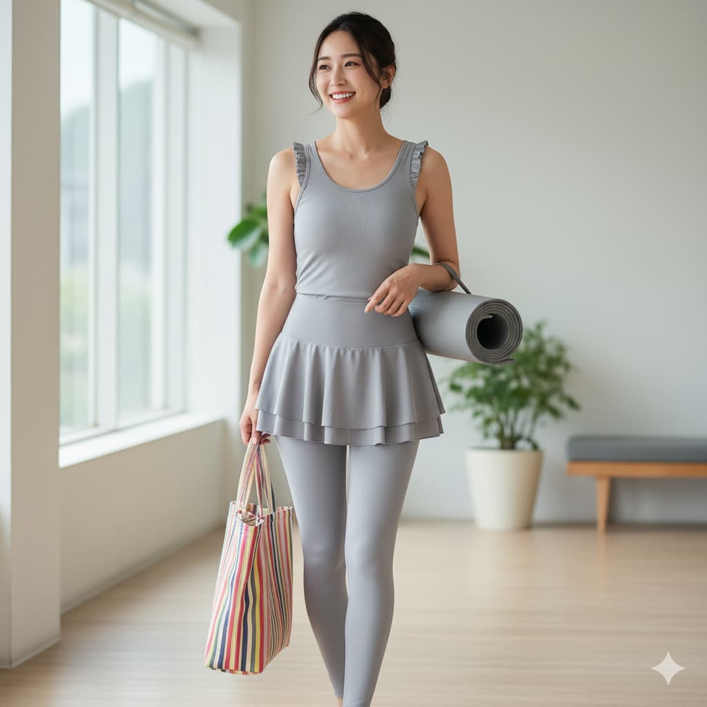 選び方と着こなしの法則さえ押さえれば、「ださい」「イタい」なんて心配はもう必要ありません。ぜひ、ご自身にぴったりの「大人のフリル」を見つけて、自信を持ってマットに向かい、自分自身のための時間を心から楽しんでくださいね。